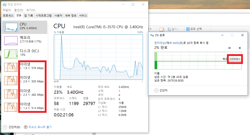 - 적용 후 : PC에서 220MB/s 로 파일 복사 (NAS > PC)